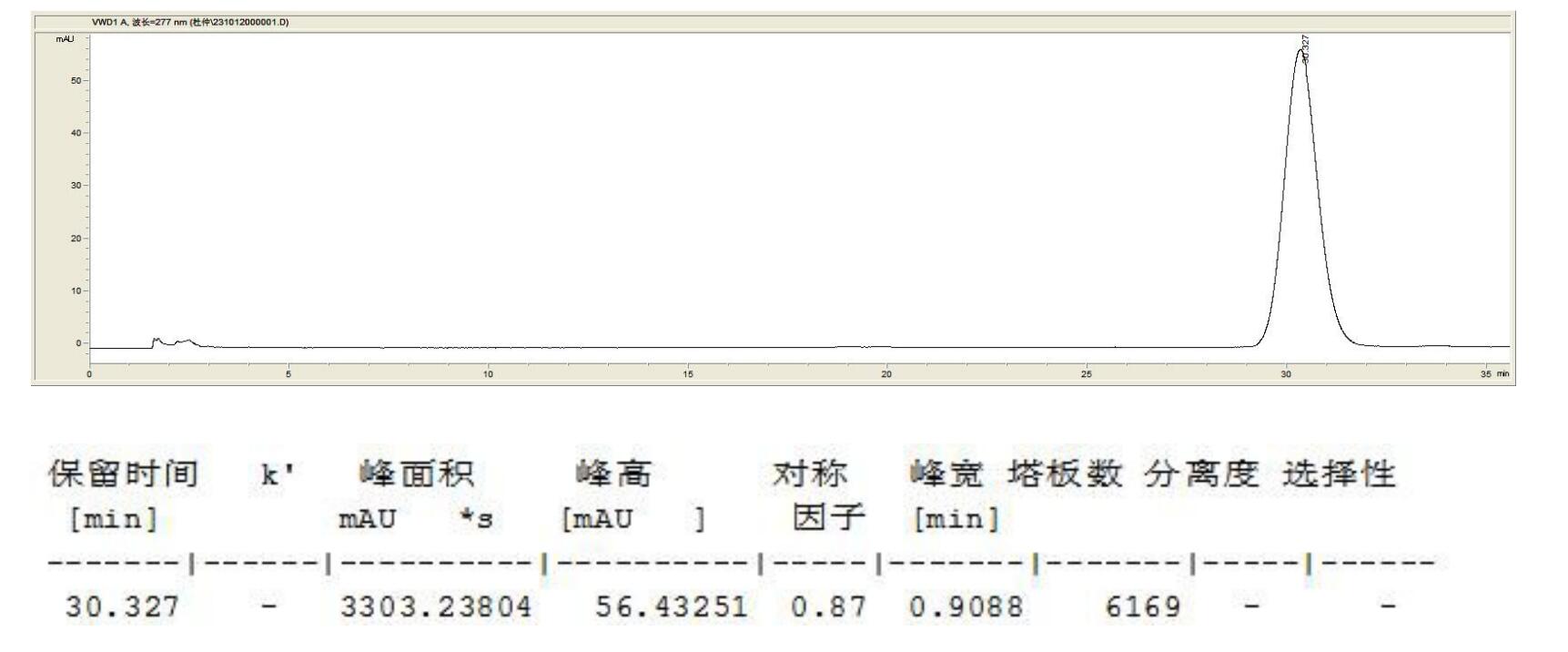 檢測器:UV 277nm