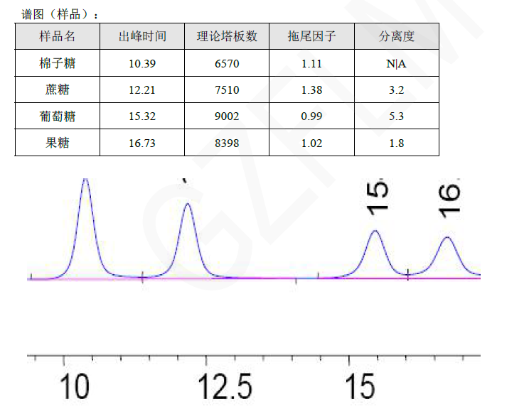 按照中國藥典方法分析棉子糖、蔗糖、果糖、葡萄糖,很多常規(guī)的鈣柱,氫柱等糖柱,棉子糖與蔗糖達(dá)不到分離度要求。而 Mecury Sucrose 10u 300*7.8mm 可以滿足藥典分離度大于 1.5 的要求 一、色譜柱選擇 分析蔗糖、棉子糖等糖類時(shí),需要選擇適合的色譜柱以確保分離度和靈敏度。Mecury Sucrose 10u 300*7.8mm色譜柱(貨號:FMH-SUCOL-KONU)是一個(gè)合適的選擇,因?yàn)樗梢詽M足藥典對分離度大于1.5的要求。