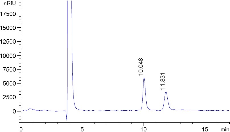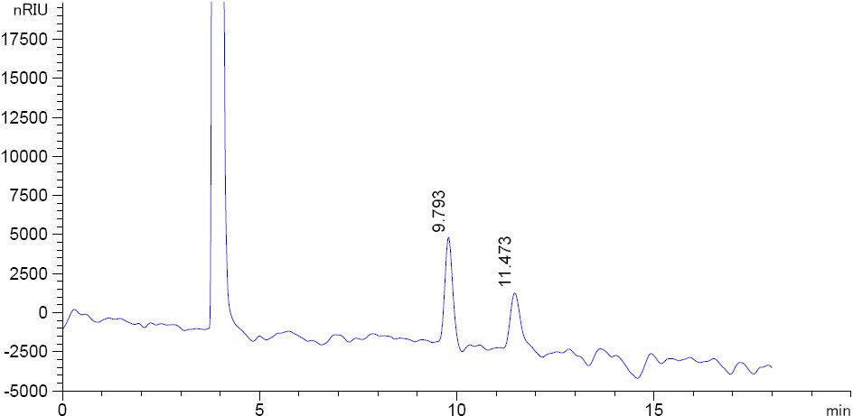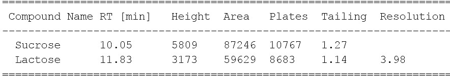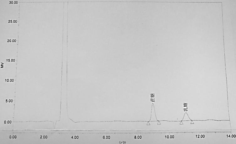 圖 2. 菲羅門MerCury NH2 乳糖專用柱在開(kāi)放的環(huán)境下色譜結(jié)果